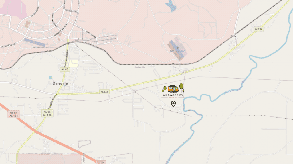 From US 84 proceed north on State 85/134 North. Turn Right at Bojangles follow 134 East. follow directional signs. Proceed 1.2 miles to Old Newton Rd (right). AL Wildwood RV entrance is 1.4miles South of 134 on Old Newton Rd on the left hand side. Conveniently located near restaurants, banks, nature and shopping in Daleville or Enterprise, AL.